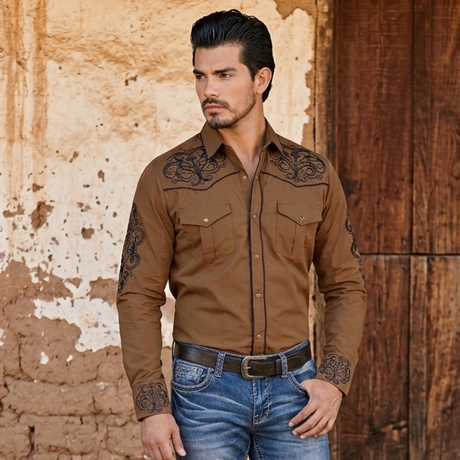 Black And Brown Casual Long Sleeve Western Cowboy Shirt 126262