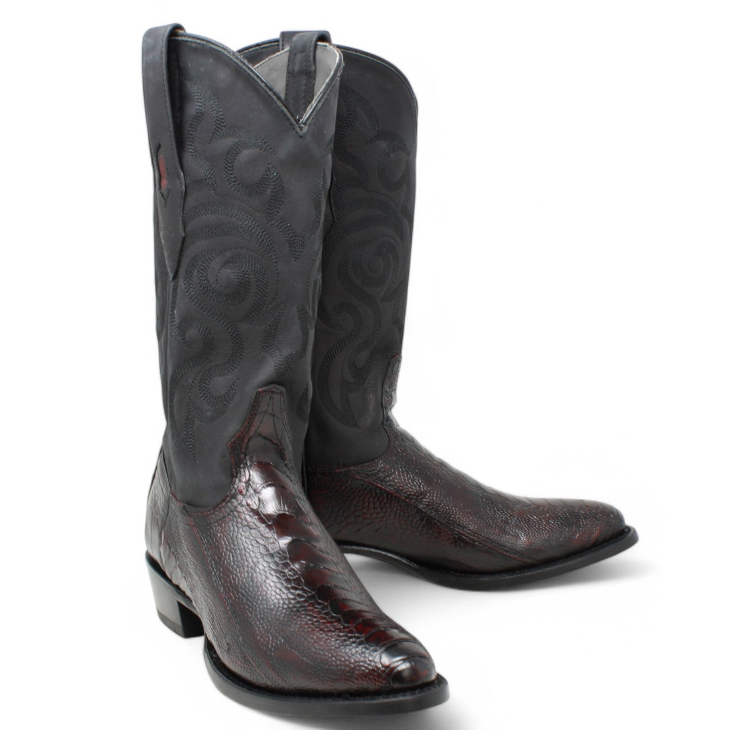 Botas de Pata de Avestruz Original Punta Oval Color Negro Rojizo - Los Altos Boots