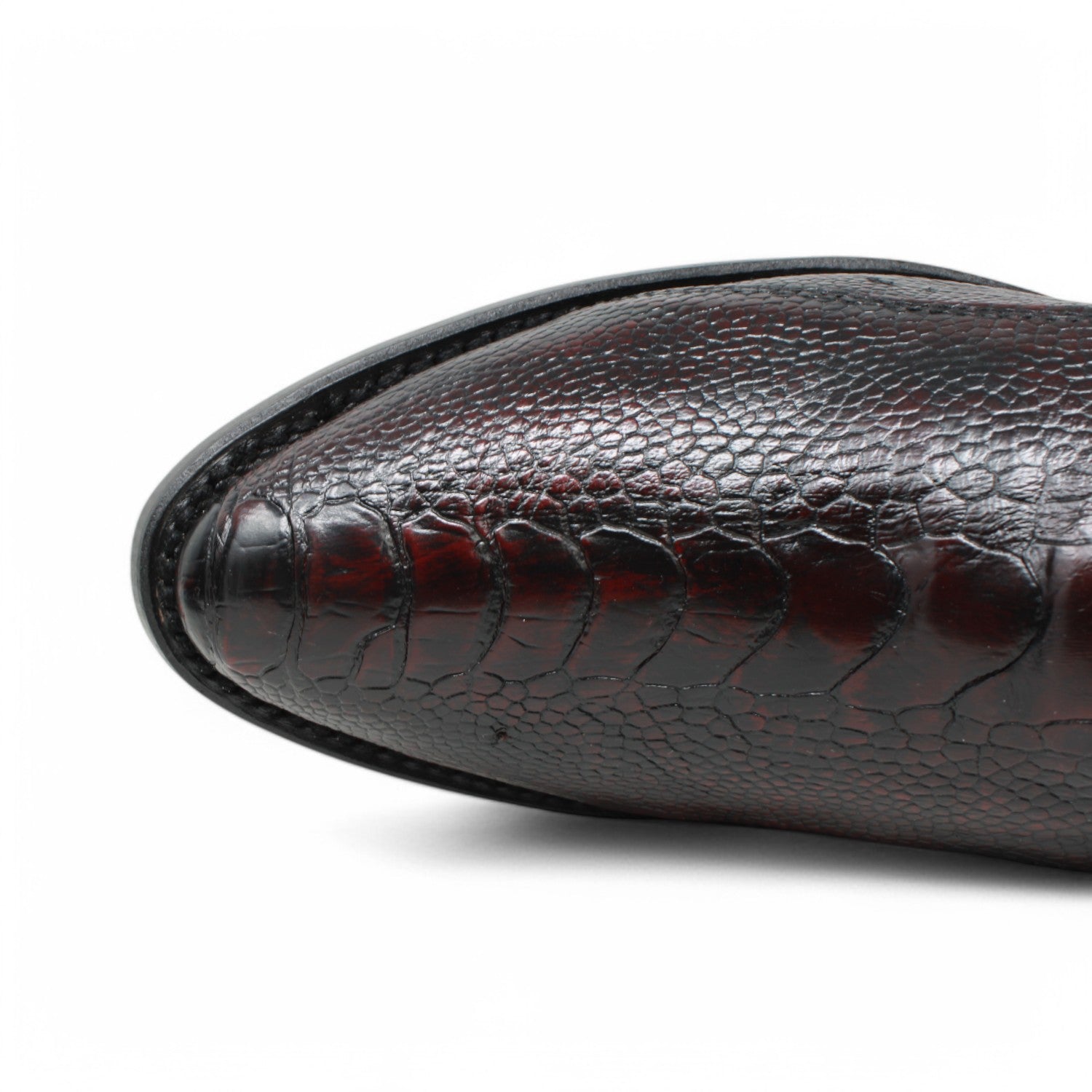 Botas de Pata de Avestruz Original Punta Oval Color Negro Rojizo