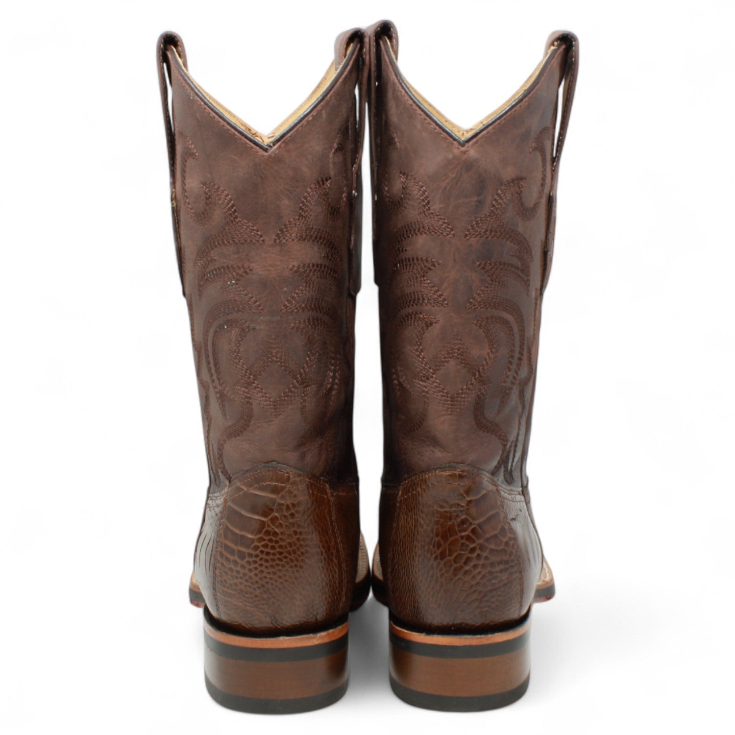 Botas de Avestruz Pata Original Punta Rodeo Cuadrada Ancha Color Cafe - Los Altos Boots