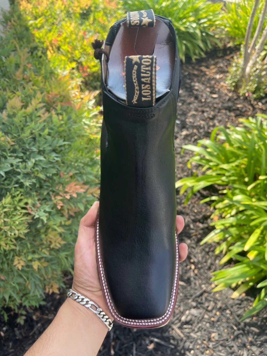 Botines de Piel Original Punta Cuadrada Ancha Color Negro - Los Altos Boots