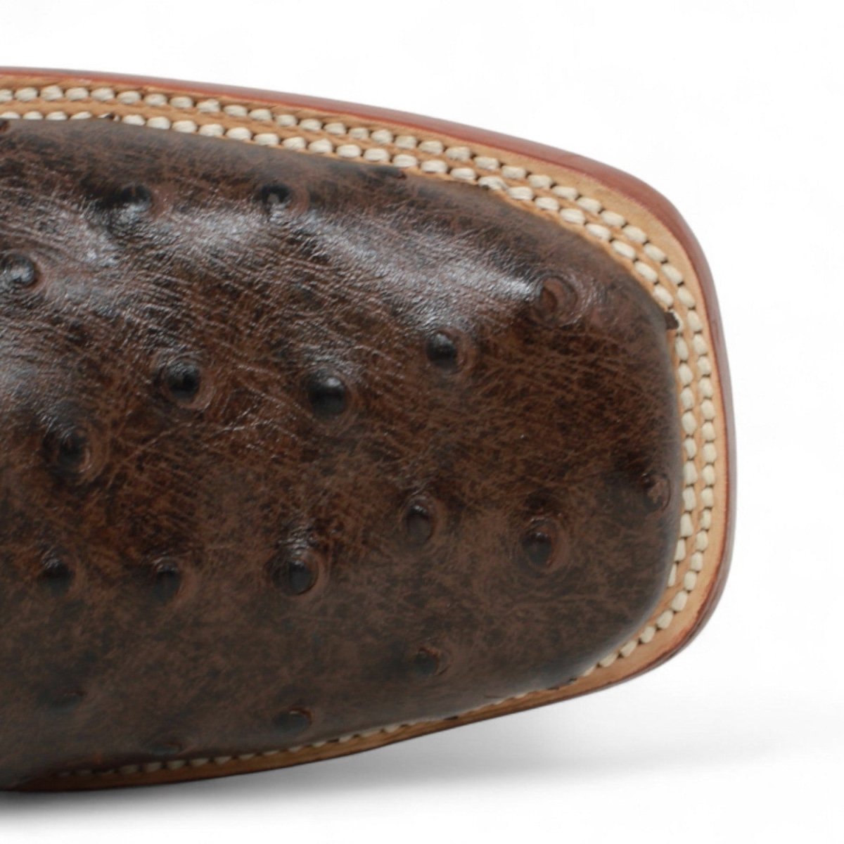 Botas Tanner Mark Boots confeccionadas a mano en fina piel grabado de Avestruz en color Cafe. Diseñadas con horma de punta cuadrada, tacón de 1.5 pulgadas y suela de cuero resistente, brindan autenticidad, durabilidad y estilo vaquero clásico.