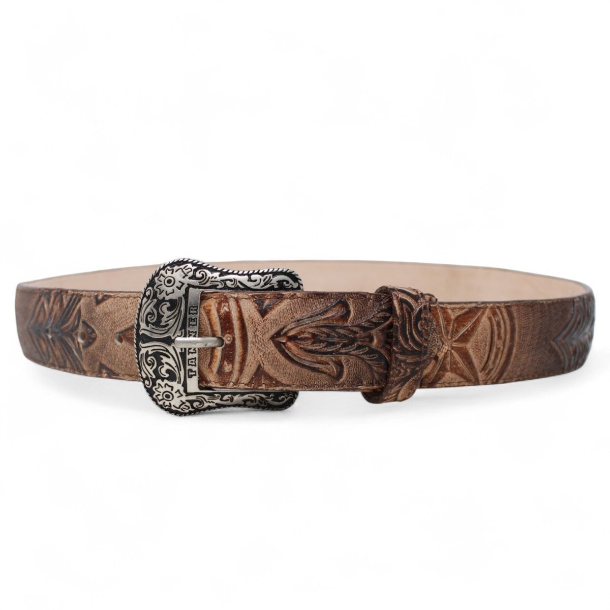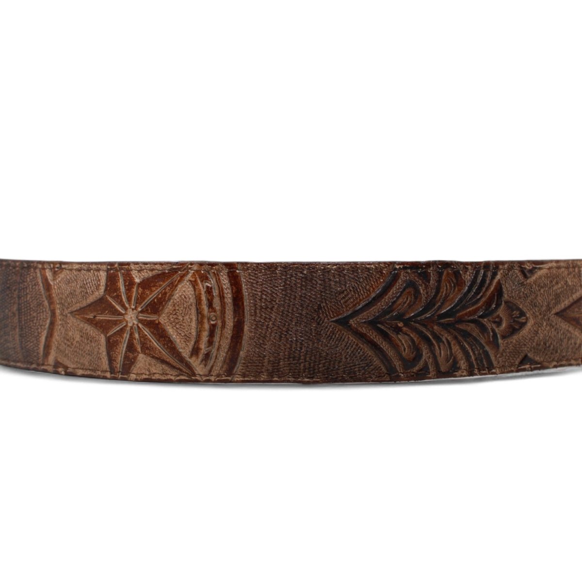 Cinturon de Piel Genuina con Estampado de Cincelada con Estrella y Hebilla Metálica Texas