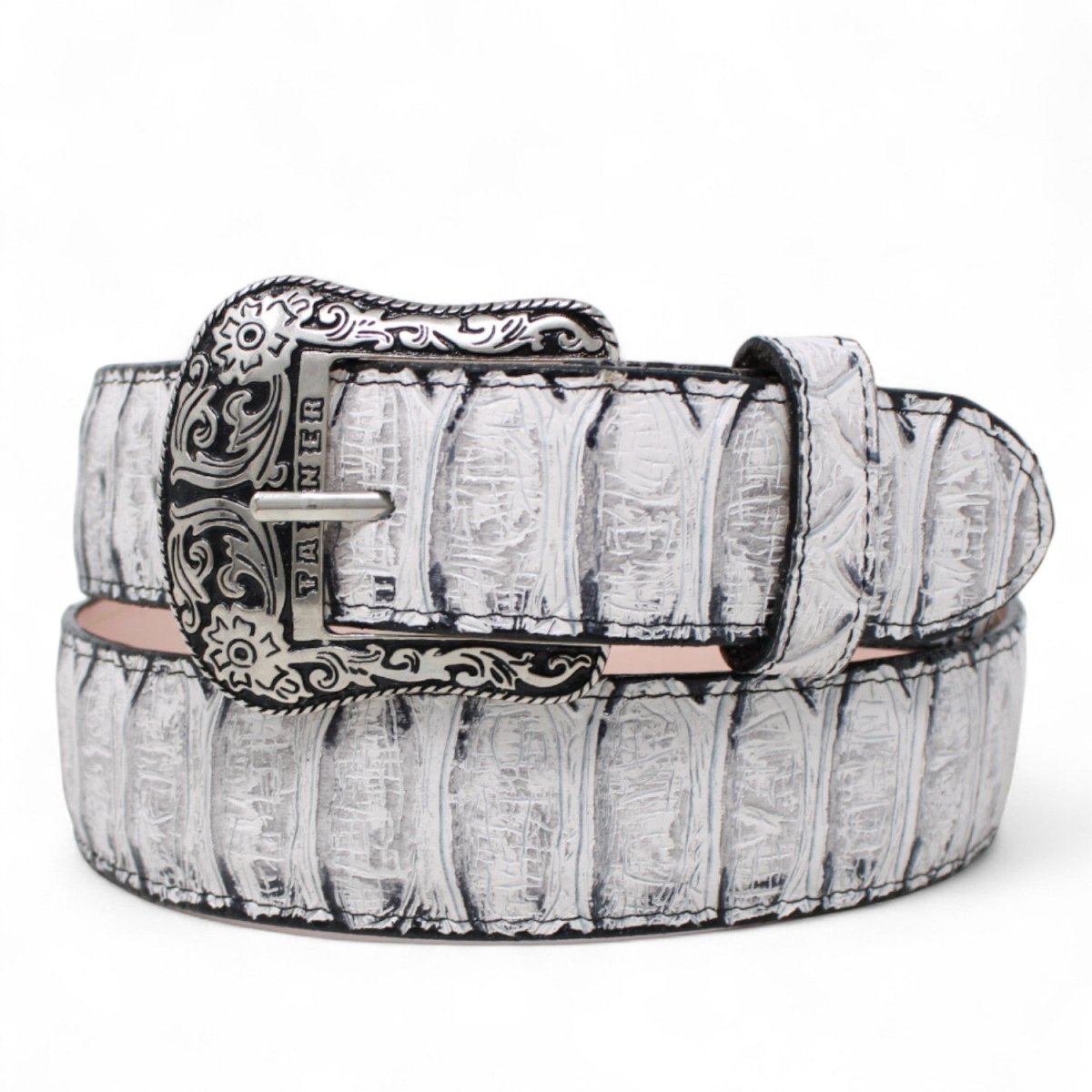 La pieza destaca por su hebilla metálica estilo Texas, finamente grabada con detalles florales que añaden un toque clásico y sofisticado. Durable, cómodo y perfecto para combinar con jeans, botas o atuendos casuales.