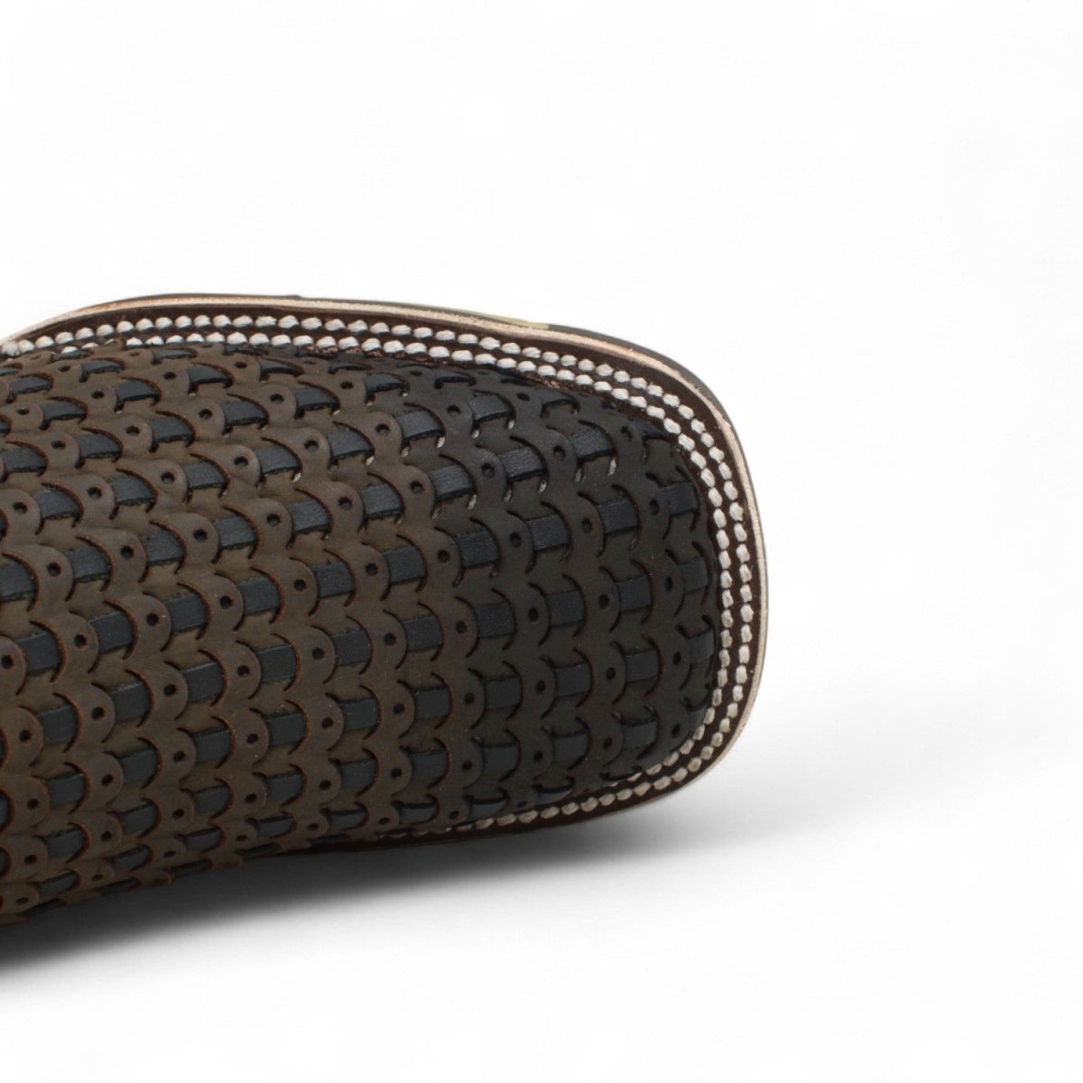 Botines Charros para Hombre en Piel Tejida – Color Cafe– Quincy Boots