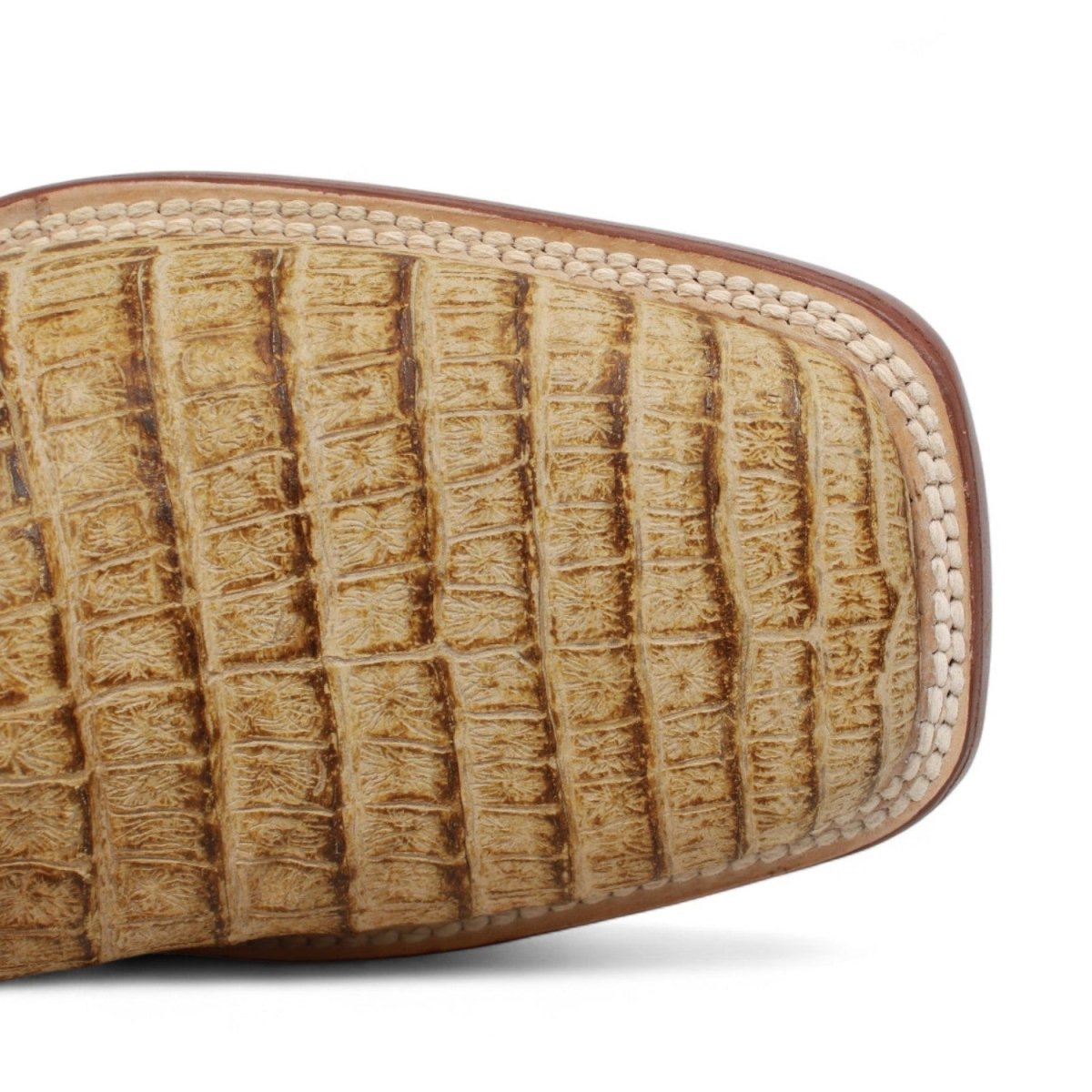 Botines Hombre de Cuero Grabadode Caiman Panza Punta Cuadrada Color Arena -Tanner Mark Boots