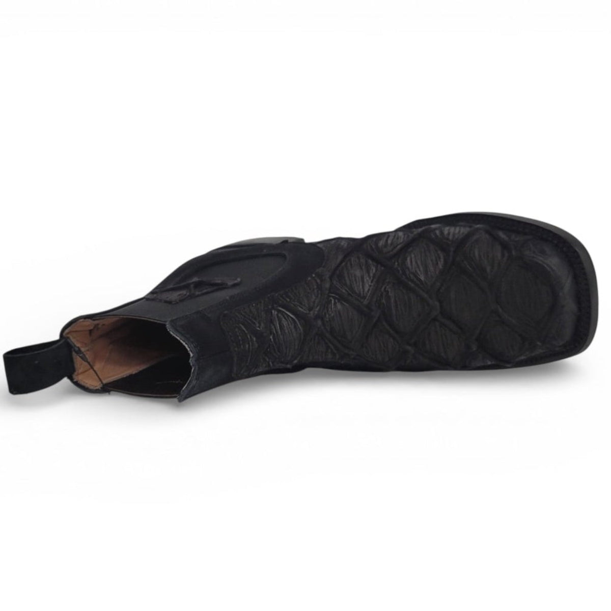 Botines de Pirarucu Grabado Punta Cuadrada Color Negro - Hooch Boots