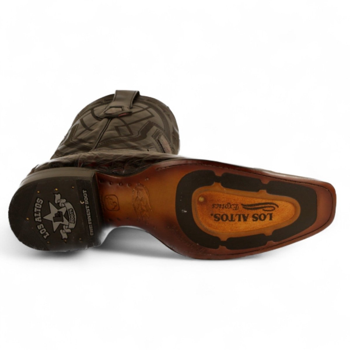 Botas de Cocodrilo Caiman Original Punta Cuadrada Europea Color Negro Rojizo - Los Altos Boots