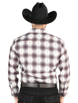 El General - Casual Long Sleeve Shirt - Beige/Burgundy 44713
