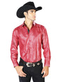Red Casual Long Sleeve Western Cowboy Shirt 43574