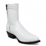 Men's White Diamonds Ostrich Print J-Toe Short Boots w/Zipper -White