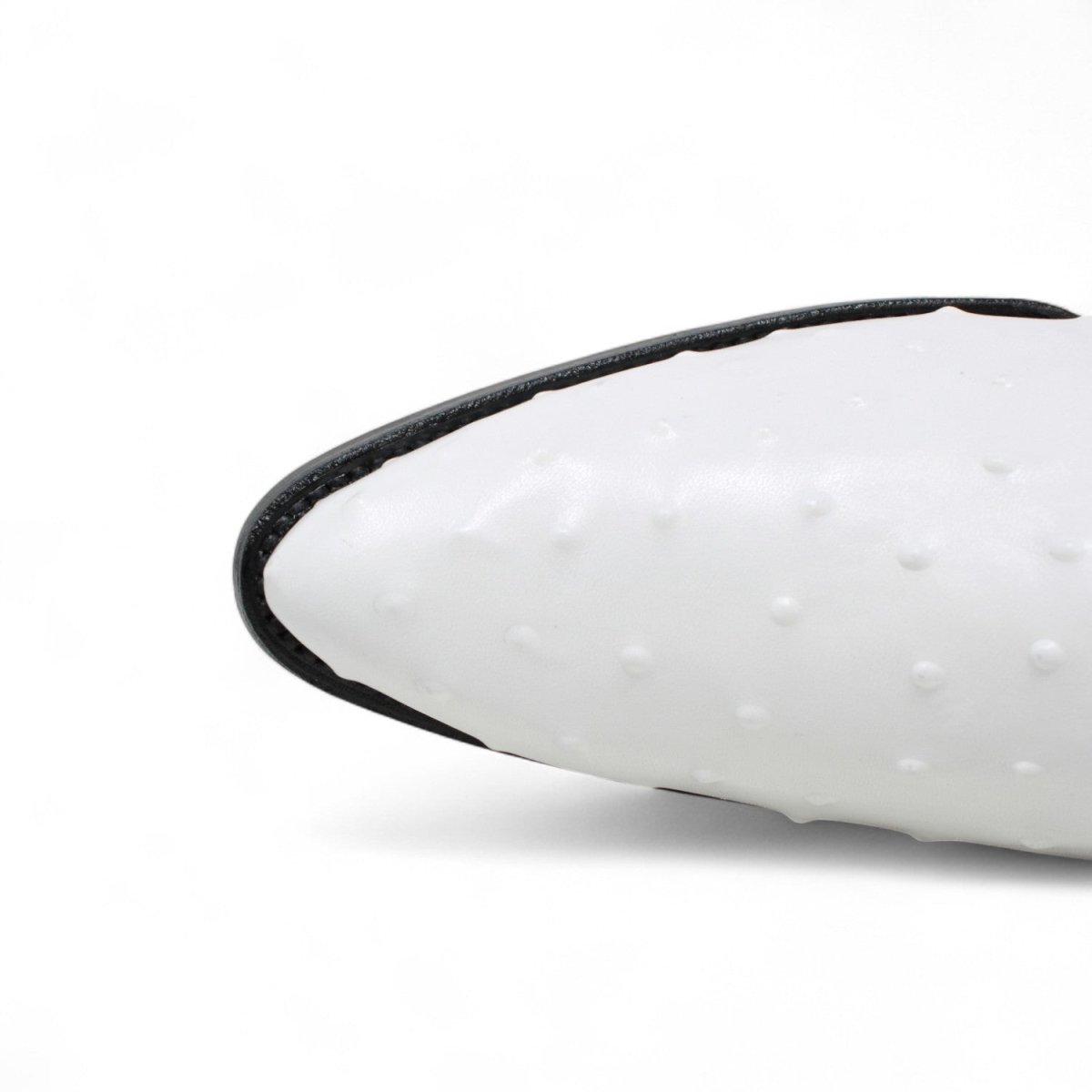 Men's White Diamonds Ostrich Print J-Toe Short Boots w/Zipper -White - 6 está agotado y se enviará tan pronto como vuelva a estar disponible.