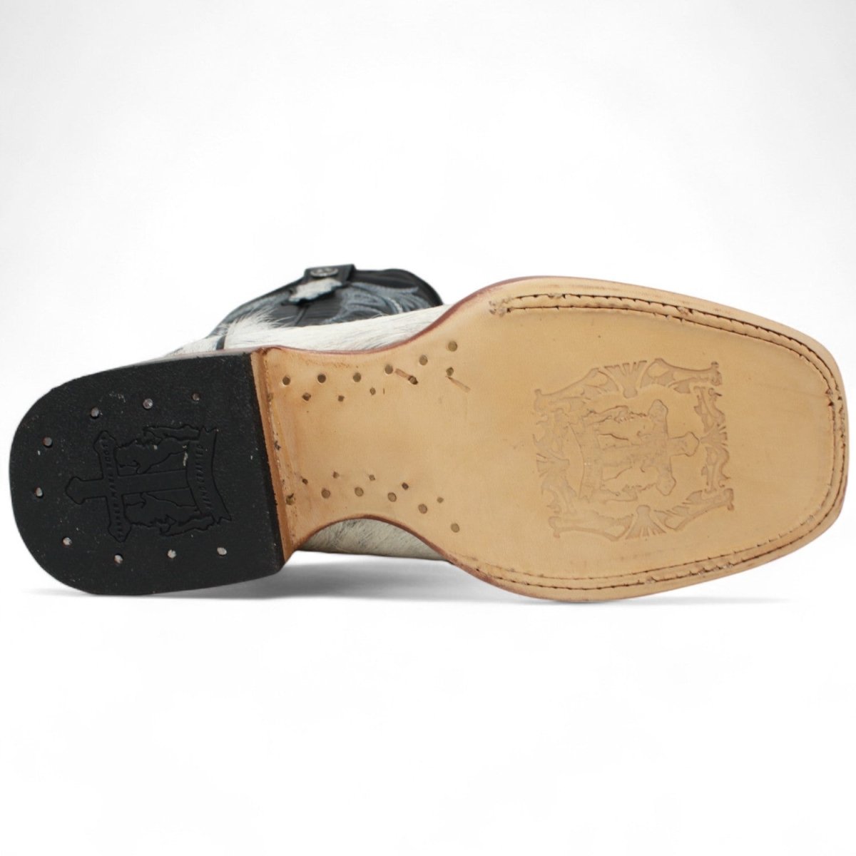 Tanner Mark Women's Full Hair On Cowhide Square Toe Boots - Black & White