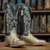 Tanner Mark Women's Genuine Full Quill Ostrich Square Toe Boots Gold TMLX20113